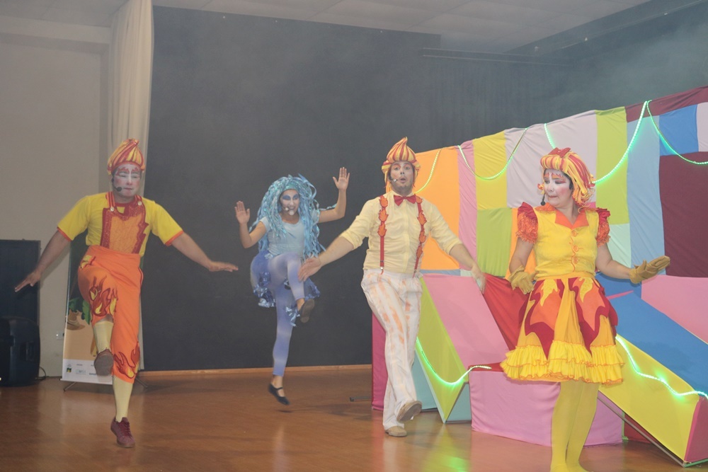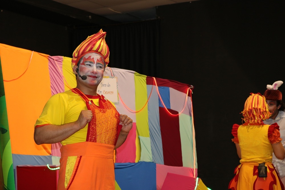 Além de um cenário atrativo, a “A descoberta de Quim Labareda” utiliza temáticas musicais, danças e manipulação de fantoches como recurso de interação com os espectadores.