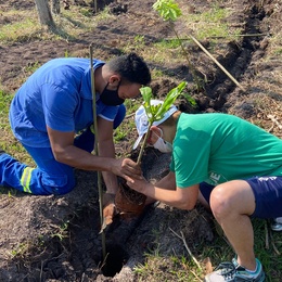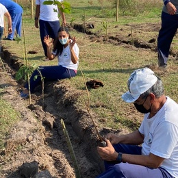 O plantio de 417 mudas contou com a participação dos funcionários da COMASA - que realizaram preparo da área, abertura de valas, controle de pragas, além dos funcionários Departamento de Agricultura e Meio Ambiente, e os alunos e professoras da APAE – Associação de Pais e Amigos dos Excepcionais. Dentre as espécies plantadas estão: capororoca, ambaúva, sangra d’água, dedaleiro, pau viola, jenipapo, aroeira pimenteira, inga mirim e tamboril.
