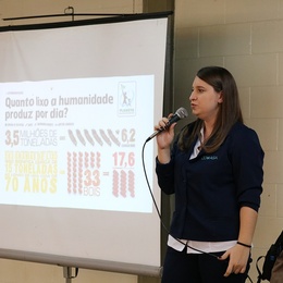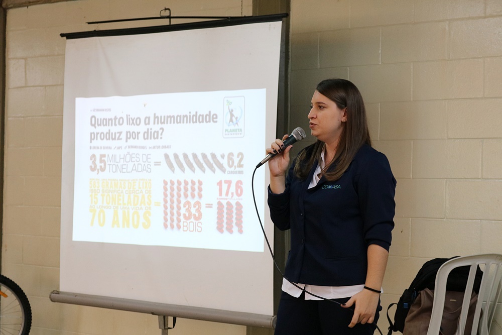 Dessa vez, a ação foi coordenada por técnicos da COMASA, que realizaram nessa sexta-feira (30), palestra com os 320 participantes do Guardiões do Meio Ambiente. De uma forma lúdica e interativa, temas relacionados à saúde, meio ambiente, reciclagem, resíduos sólidos e turismo sustentável foram abordados durante a atividade. Os alunos realizaram dinâmica sobre conscientização do descarte correto de lixos, puderam observar amostras de efluentes antes e após o tratamento, além de aprenderem sobre a importância do saneamento.