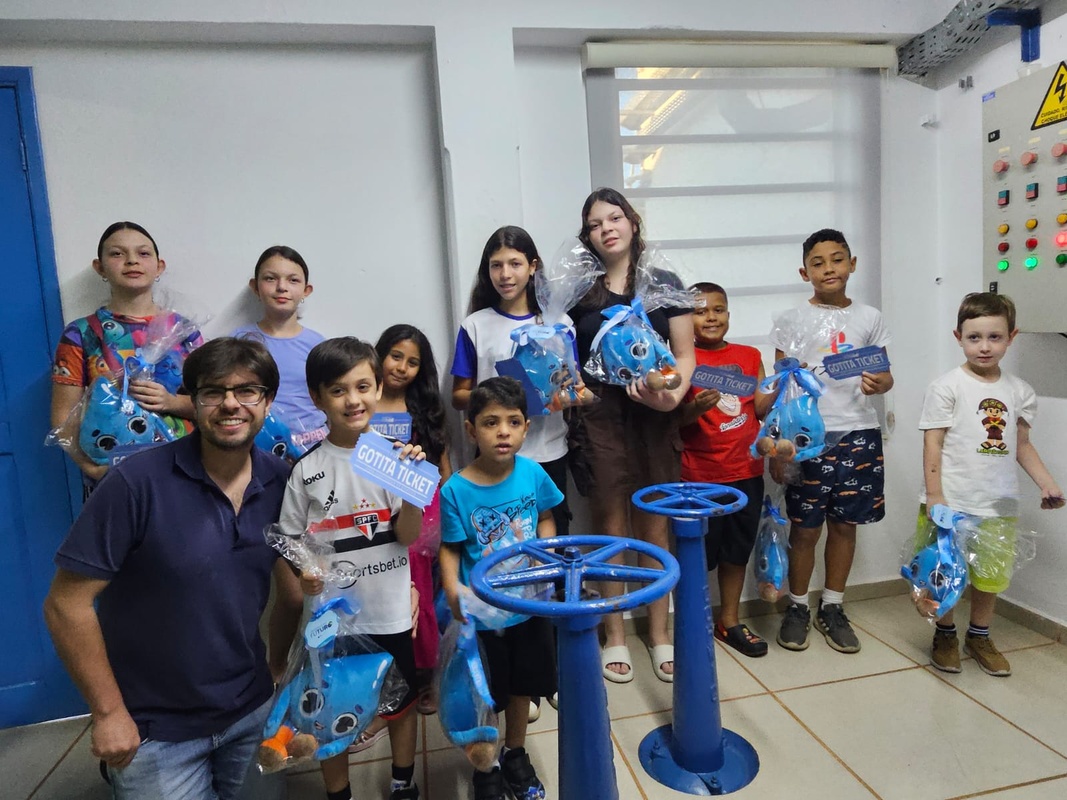 A nova fase do Programa Herdeiros do Futuro chegou a Santa Rita do Passa Quatro e trouxe consigo um momento especial para a Comasa. As crianças tiveram a oportunidade de conhecer a nova personagem, Gotita, e seus amigos, que unem educação e responsabilidade na preservação do meio ambiente.