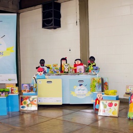 Montada em MDF, a minibiblioteca móvel é equipada com bancos, prateleiras, gavetas e mesas integradas para acomodar livros, fantoches, jogos, brinquedos lúdicos e materiais pedagógicos em geral. Foi pensada como uma ferramenta para ajudar o desenvolvimento socioemocional de crianças e jovens, oferecendo apoio aos professores da rede pública em ações difusoras da literatura.