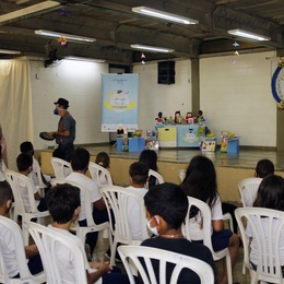 A inauguração do projeto Baú de Histórias, cuja finalidade é incentivar a difusão do hábito de leitura em alunos de escolas públicas, contou com a participação de 300 estudantes da EMEF do CAIC Laura S.Barbuio, de Santa Rita do Passa Quatro.