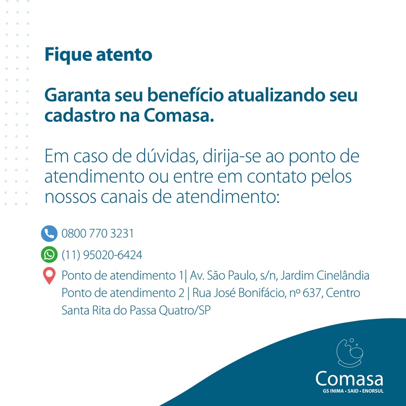 A COMASA comprometida em garantir o acesso à água e ao saneamento para todos! Por isso, oferecemos descontos especiais na conta de água e esgoto para famílias em situação de vulnerabilidade econômica.
