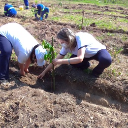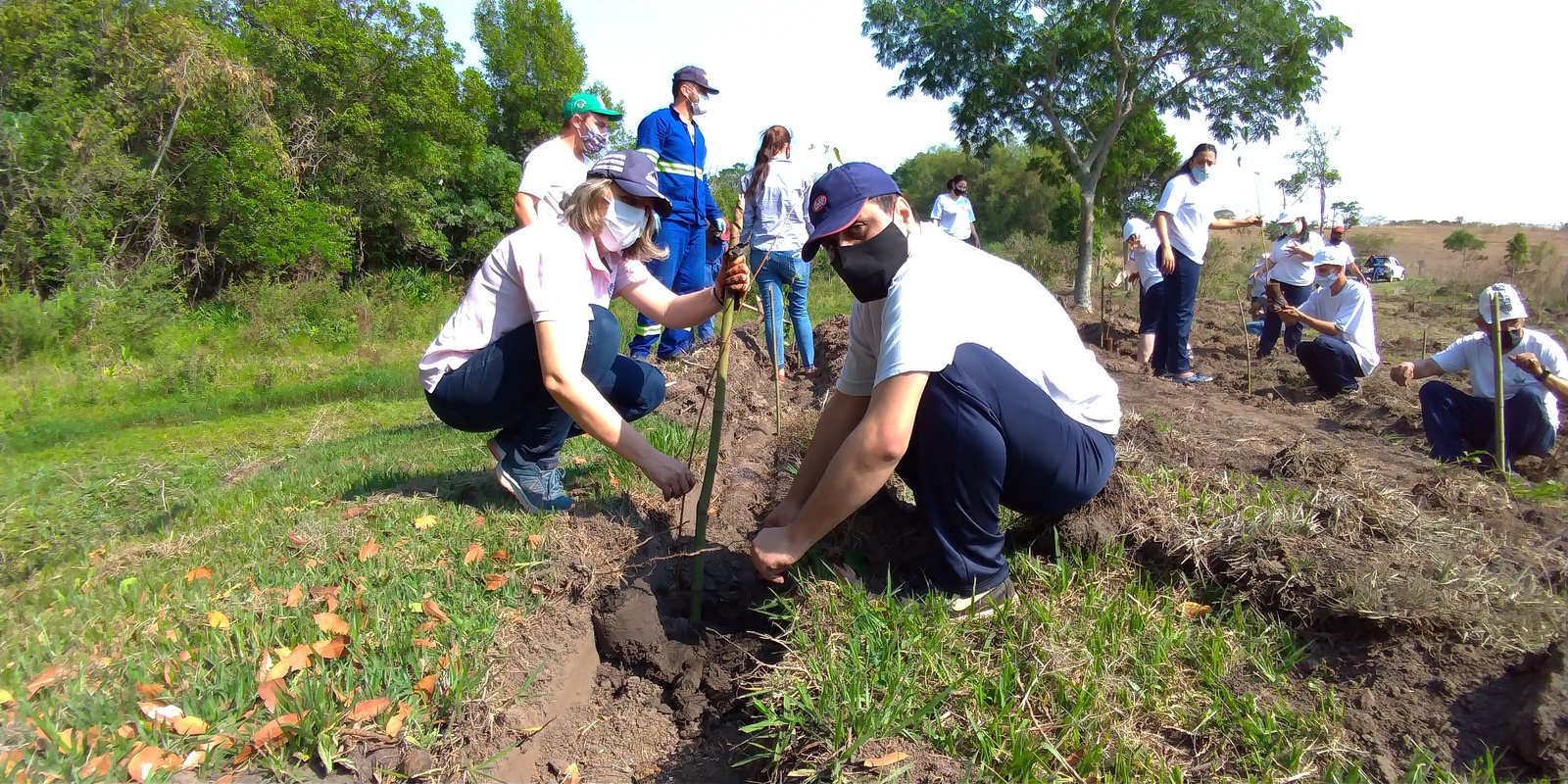 Plantio de mudas com apoio da comunidade local.